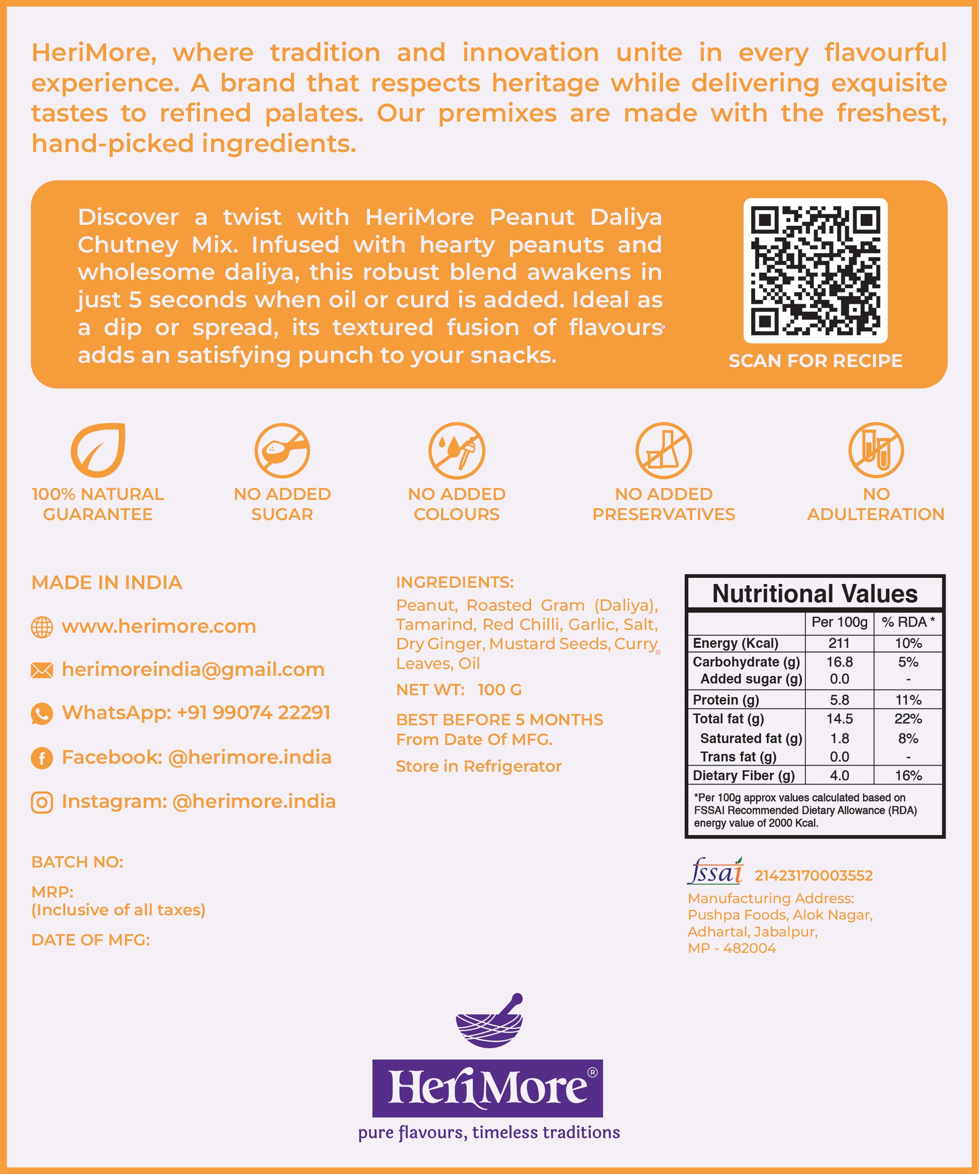 Savour the perfect crunch, the nutty depth, and the spicy-tangy twist—all in one effortless HeriMore Mix!